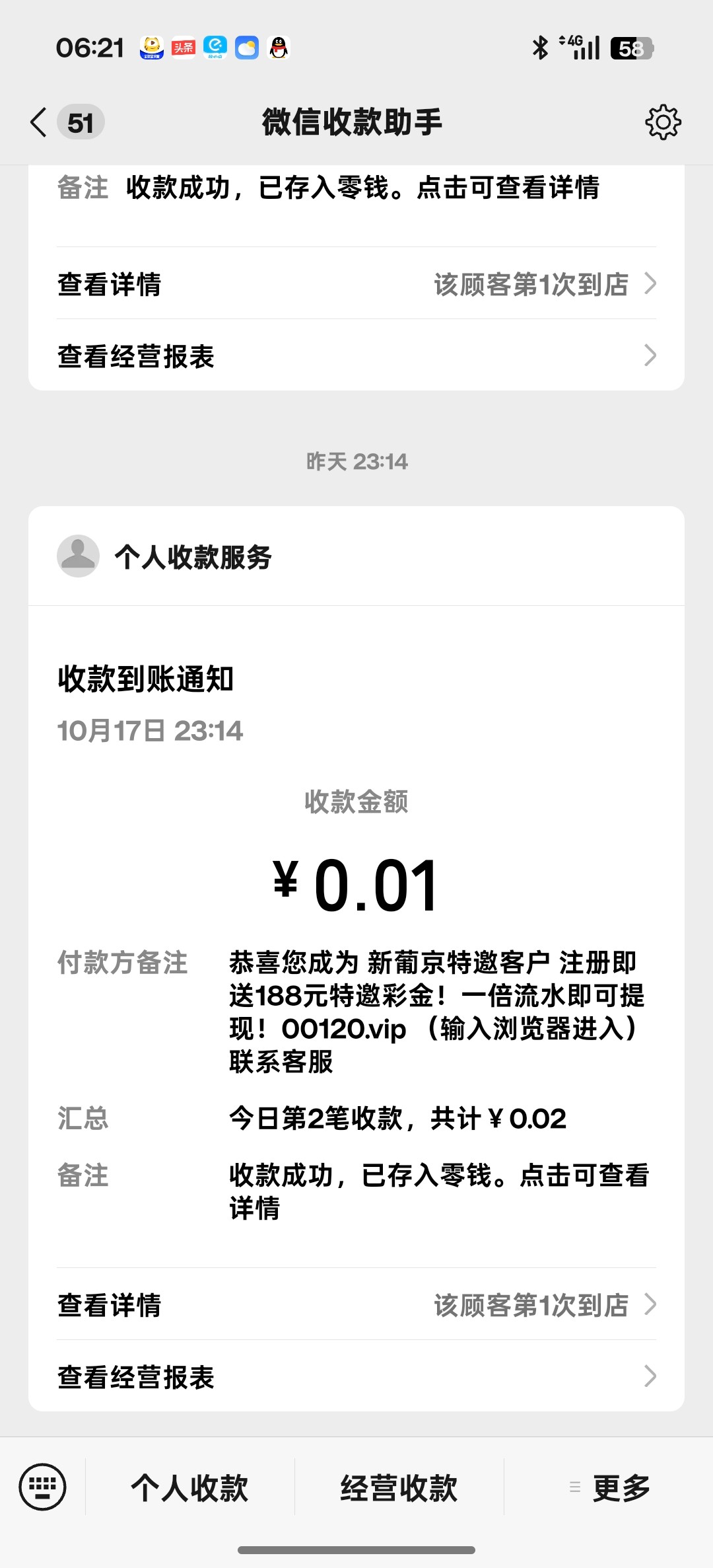 最近你妈的一群死妈垃圾平台微信扫码0.01然后特邀送 然后进去就是骗充值