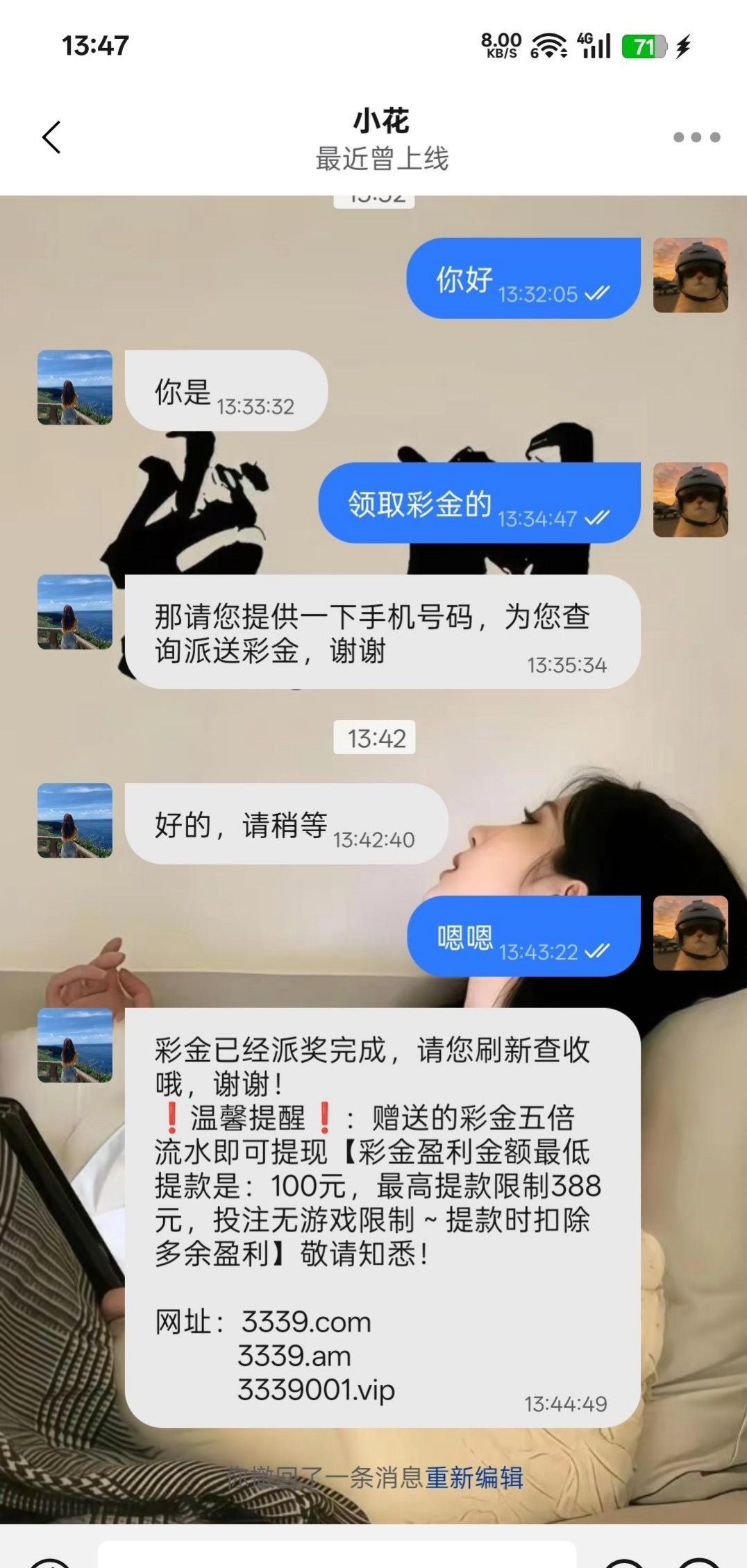 图片里有那个专员的旺旺,给他就说领彩金的,然后报给他。各位老哥拿去撸,没撸到的也别来骂我了(别充值就行了)