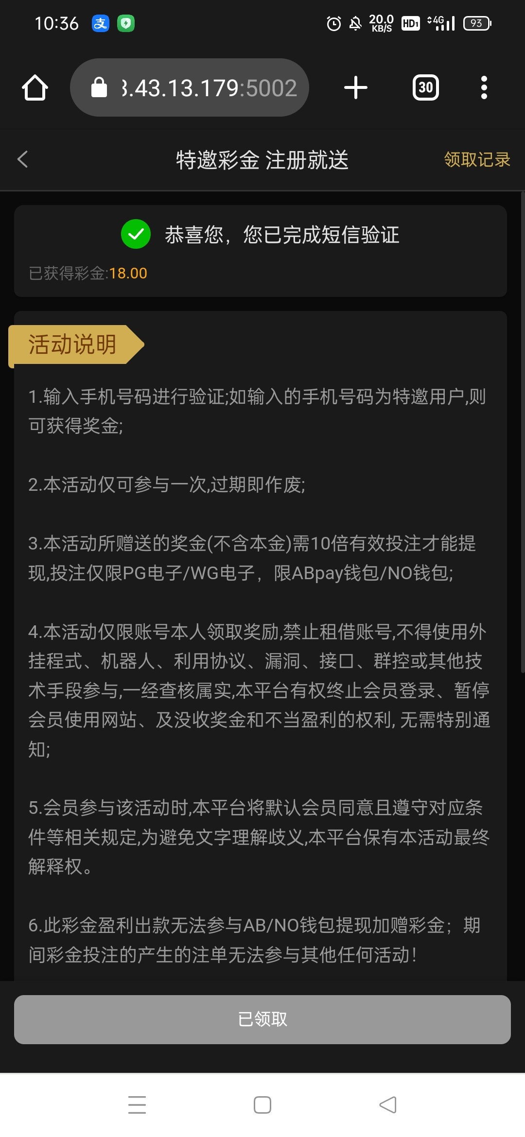 碰瓷彩金验证手机号