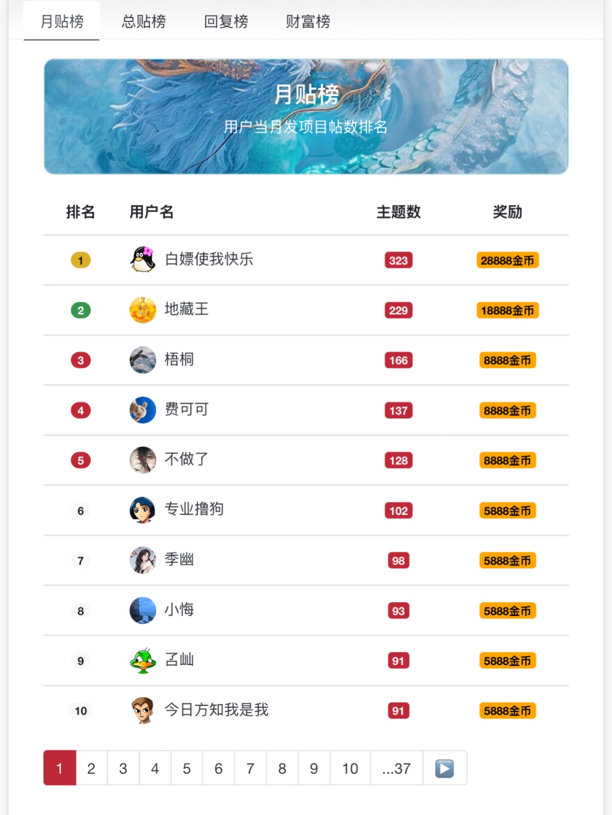 对当月发帖和活跃用户进行嘉奖