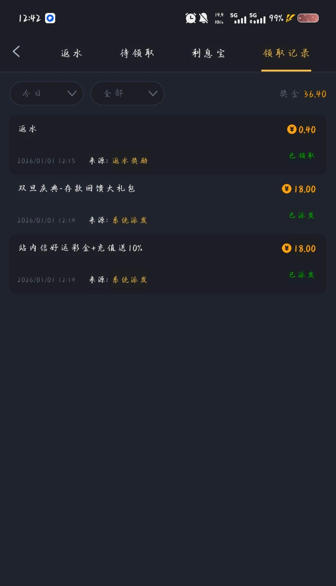 威尼斯人送36今天元旦上去领了两个18看图片