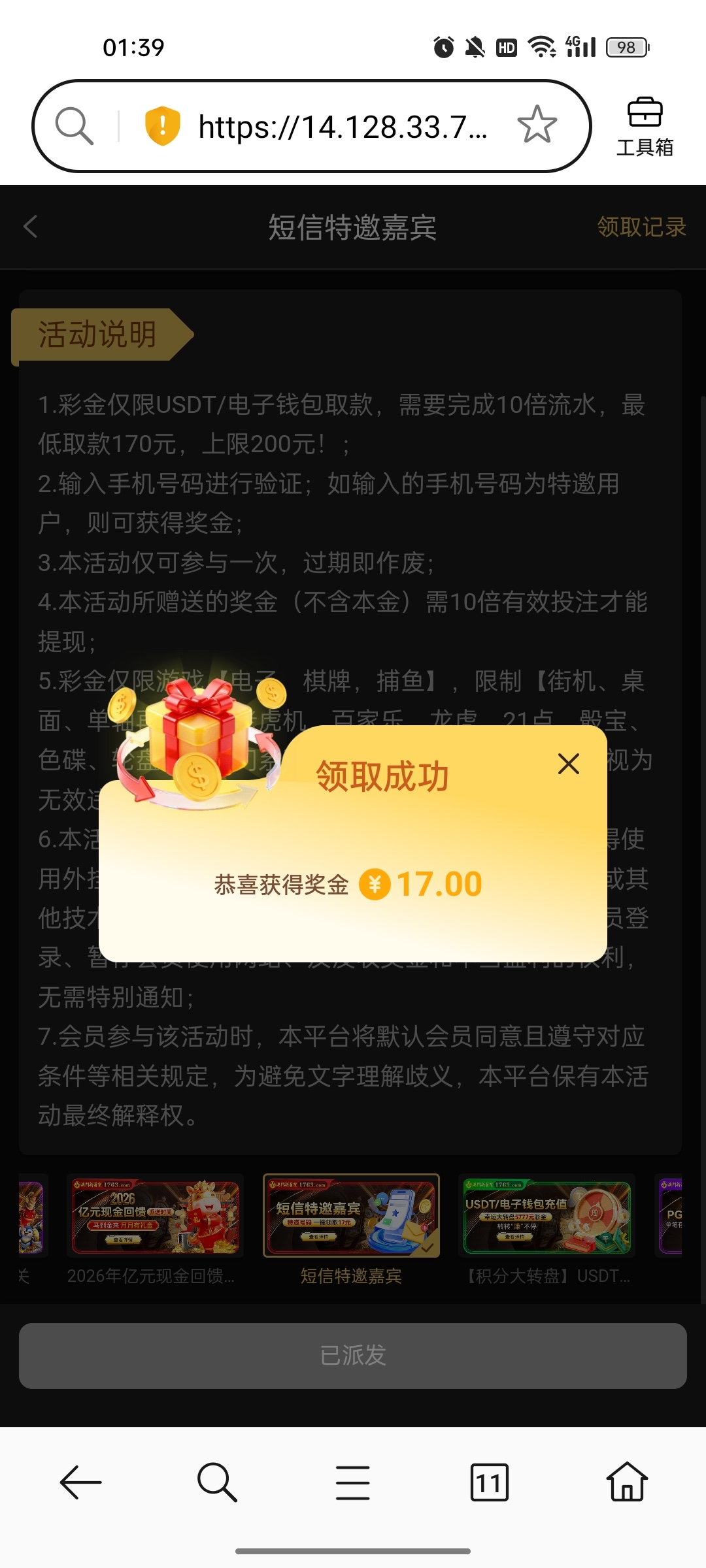 澳门新葡京1713,  想碰的也可以去试试我没打出来,最低提款170
