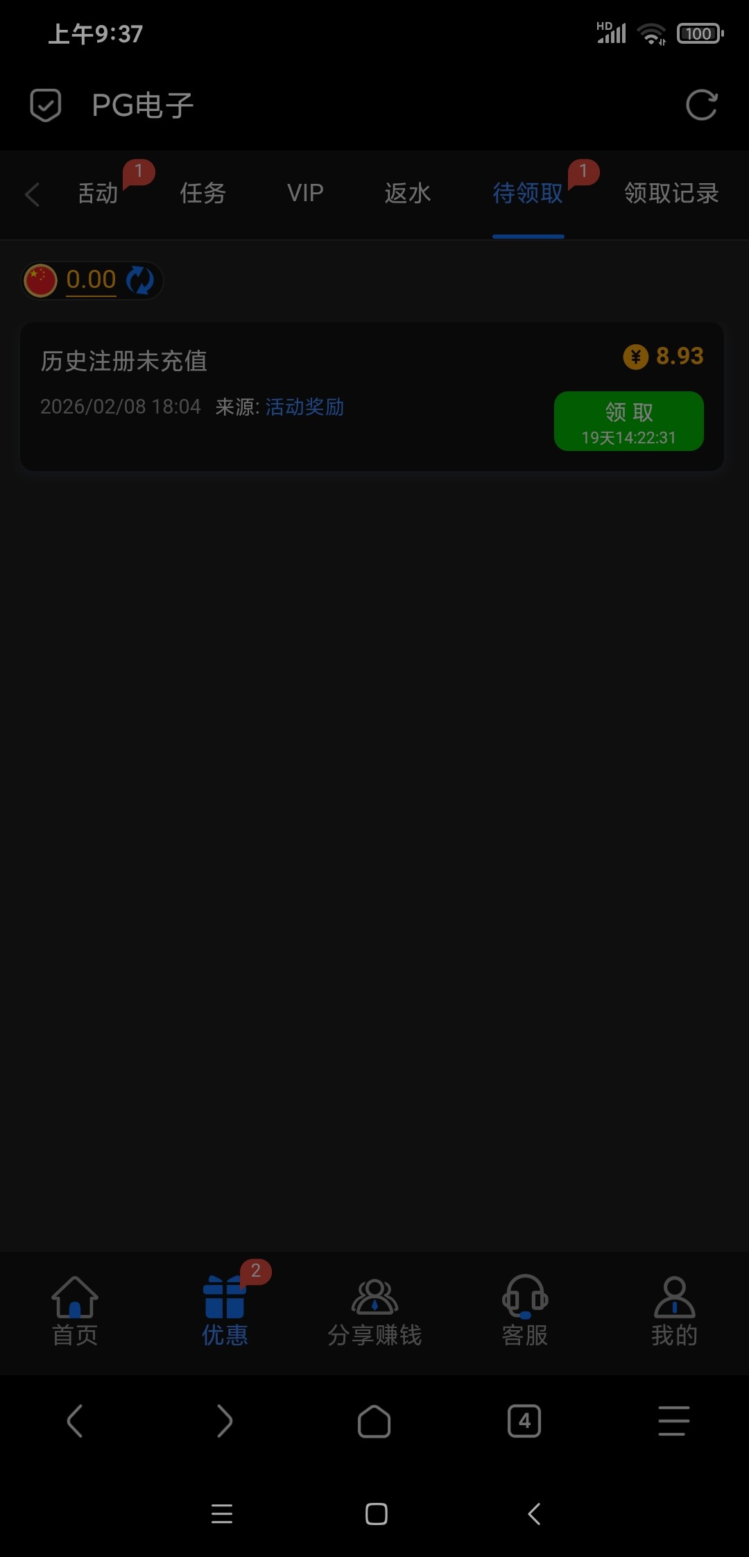 上号待领取里面,人人有,充值过有28,没充值有八块。241.com