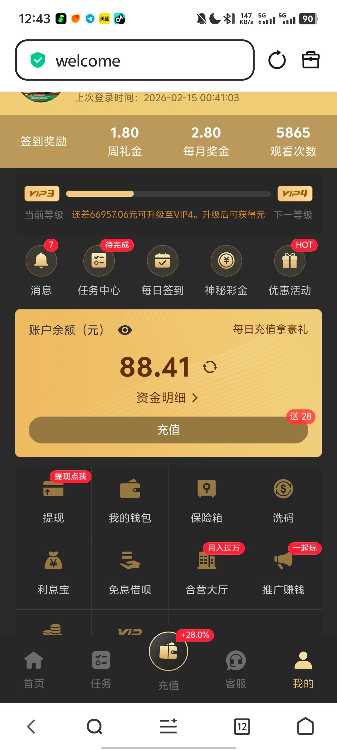 你这88彩金哪来的,我登录进去就2块钱神秘彩金,哈哈哈