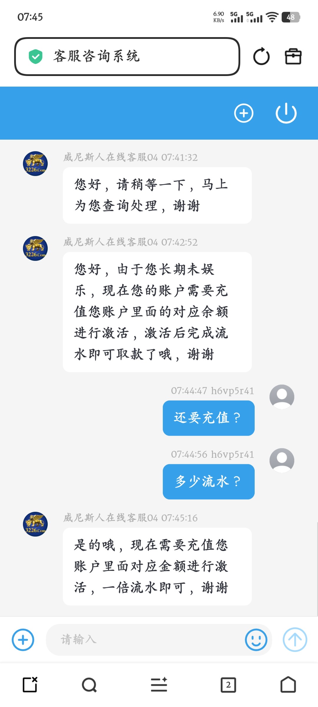 好久不玩这个平台,今天上去有几十块钱,赢了一点,要我充值,