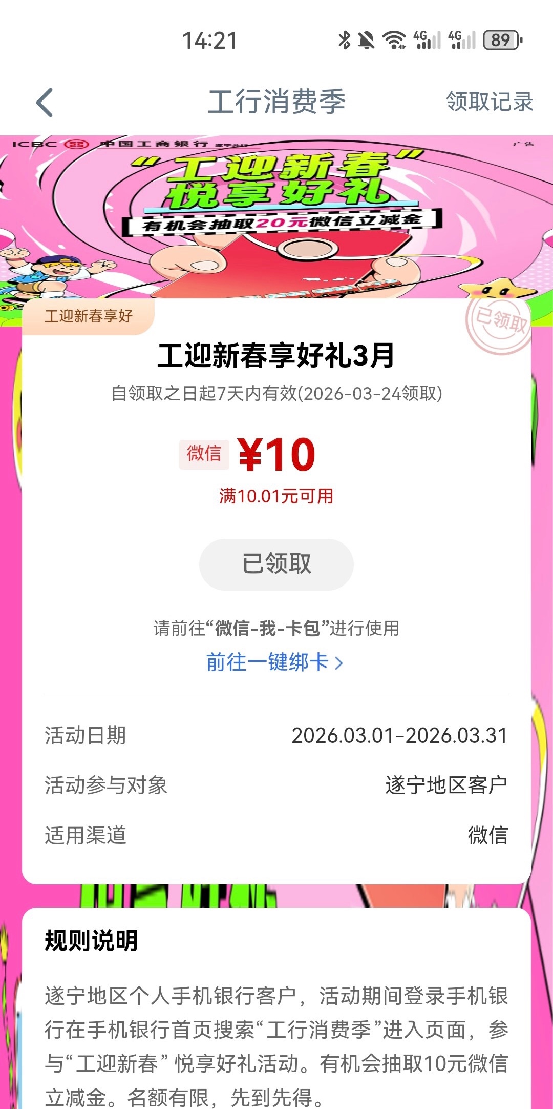 【羊毛-工行遂宁做任务25块】