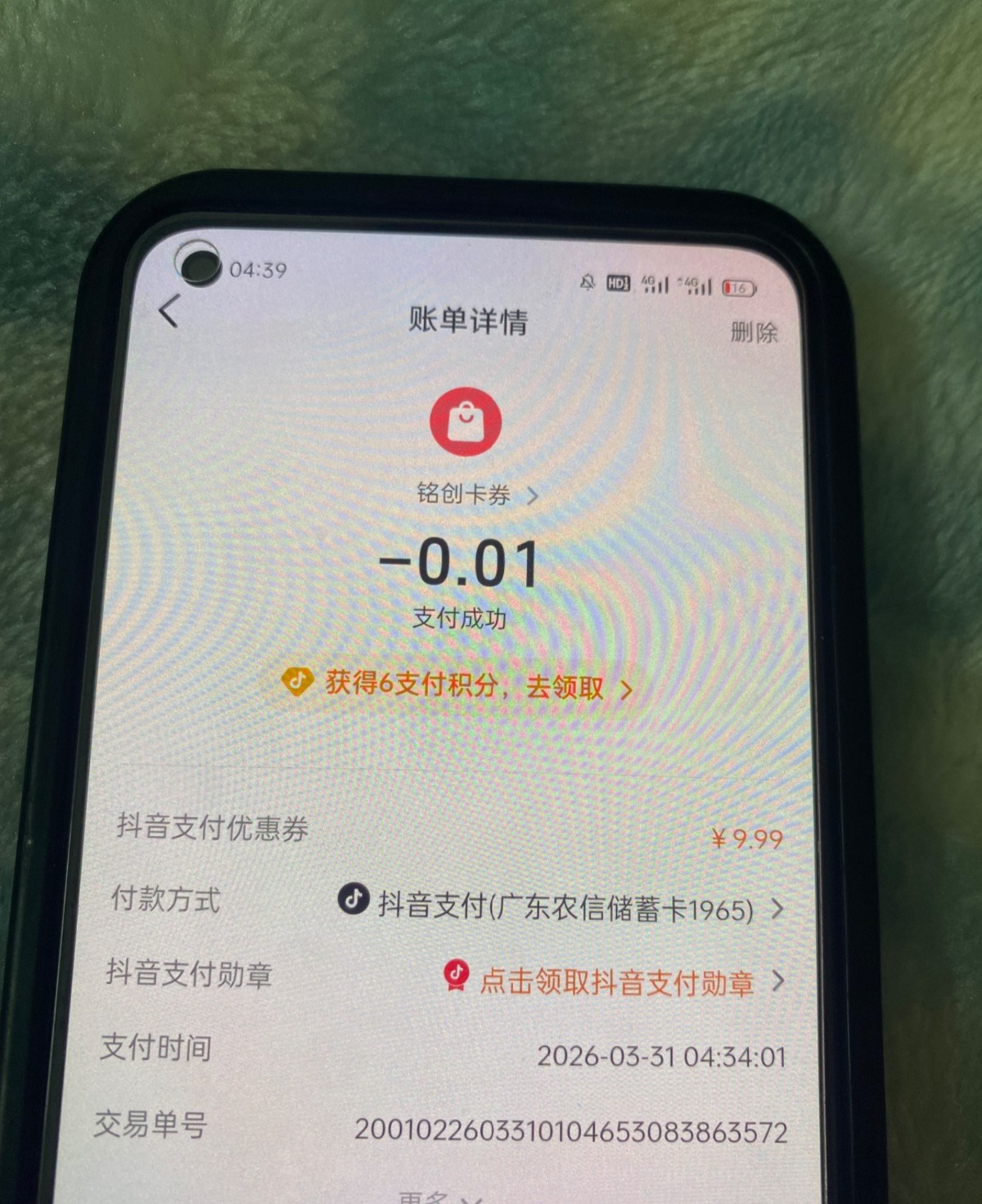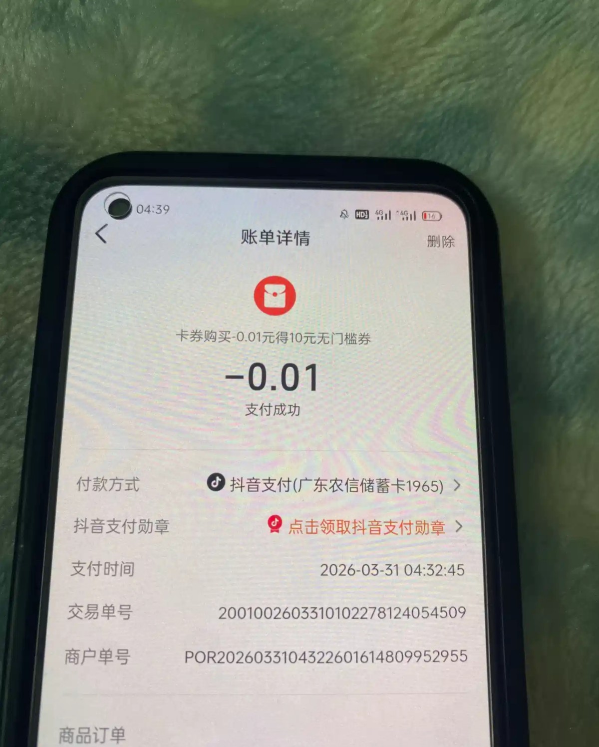 第1步如果已有注册过抖音账号的,可以用新的手机号多注册一个账号,然后实名点我的钱包你会看到5.01然后就是绑定银行卡提现秒到账,他会弹屏让你支付0.01购买无门槛优惠券,你支付即可,后面自己去买一张e卡套现!点团购还有新人优惠,0.01吃汉堡。总结,人人可白嫖只需要多一张新的手机卡即可。