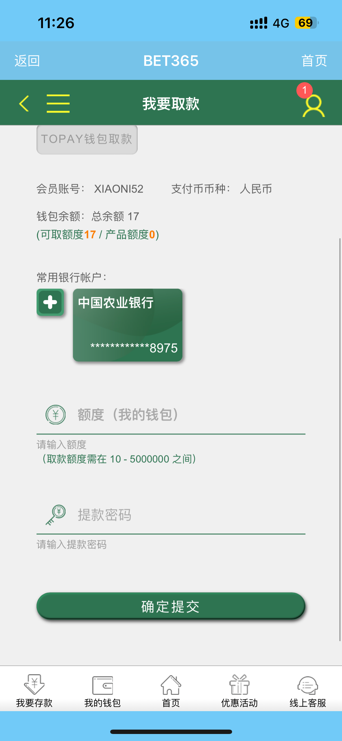 我送了17,现在用钱宝取款42,一直没有到